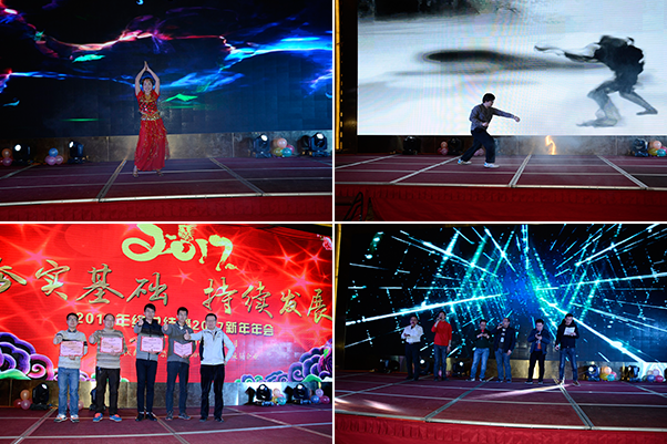 此次年會在一段動感熱辣的舞蹈秀中拉開帷幕,中間穿插的幸運抽獎及搶紅包的環(huán)節(jié)更是將晚會推向一個又一個高潮。公司年會不僅給大家?guī)砹藲g聲笑語,同時也讓同事之間彼此的心更加貼近。公司領(lǐng)導與員工親情互動、激動人心的抽獎活動、精彩紛呈的舞蹈、魔術(shù)、唱歌、小品、武術(shù)、互動游戲等,讓歌聲、掌聲、歡呼聲在會場上空久久回蕩。整場晚會高潮迭起,呈現(xiàn)出?;圻@個大家庭的歡樂與和諧。