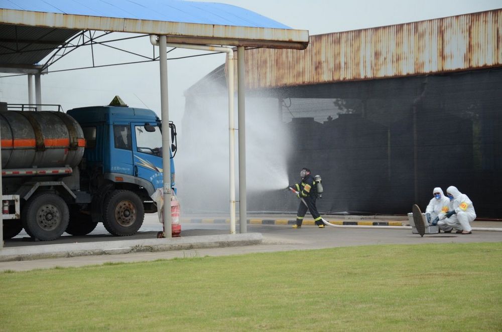 公司啟動應(yīng)急預(yù)案后,防化搶險組第一個沖到現(xiàn)場