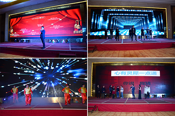 此次年會在一段動感熱辣的舞蹈秀中拉開帷幕,中間穿插的幸運抽獎及搶紅包的環(huán)節(jié)更是將晚會推向一個又一個高潮。公司年會不僅給大家?guī)砹藲g聲笑語,同時也讓同事之間彼此的心更加貼近。公司領(lǐng)導與員工親情互動、激動人心的抽獎活動、精彩紛呈的舞蹈、魔術(shù)、唱歌、小品、武術(shù)、互動游戲等,讓歌聲、掌聲、歡呼聲在會場上空久久回蕩。整場晚會高潮迭起,呈現(xiàn)出?;圻@個大家庭的歡樂與和諧。