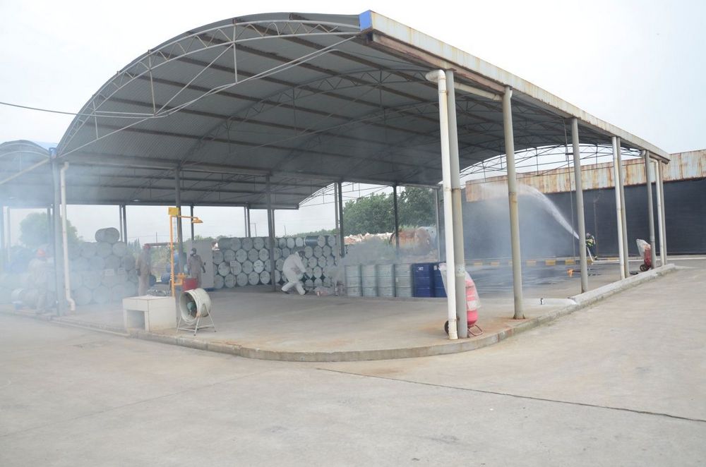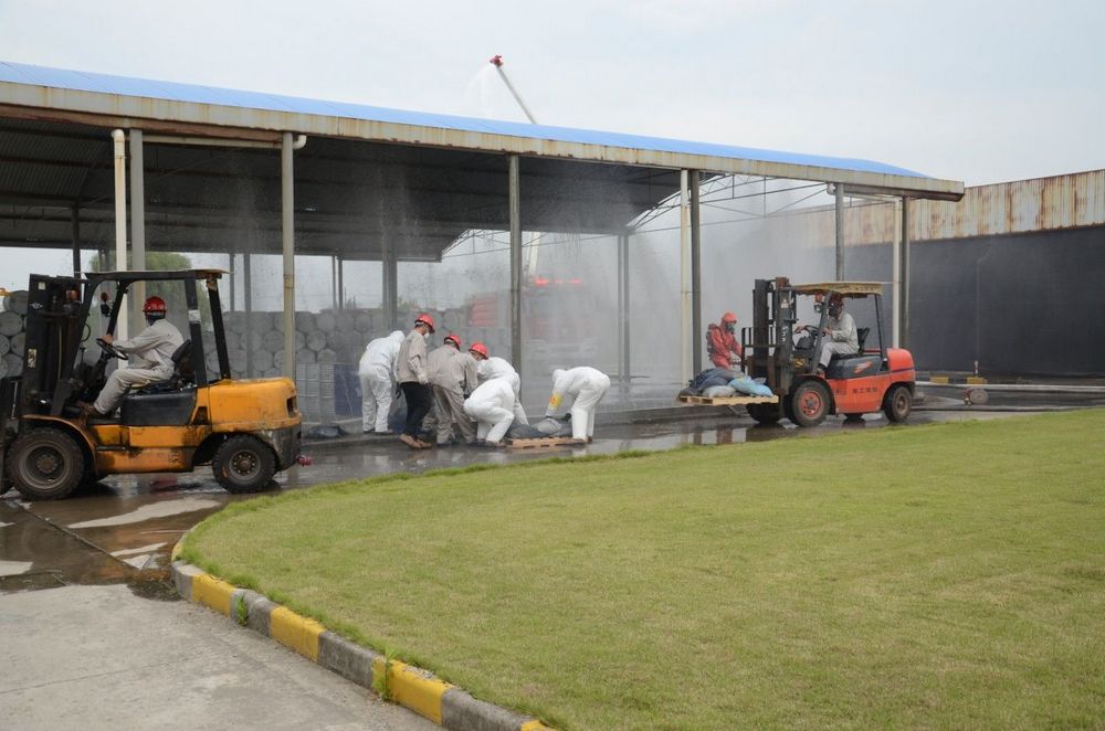 公司啟動應(yīng)急預(yù)案后,防化搶險組第一個沖到現(xiàn)場