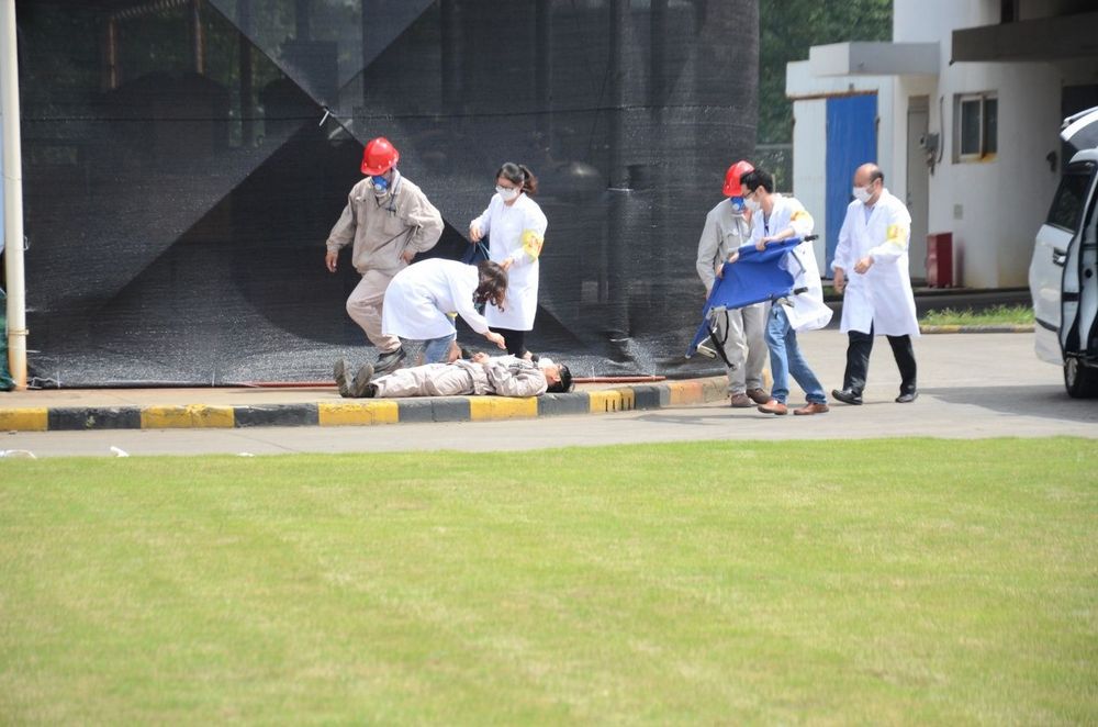 醫(yī)護(hù)搶救組人員對受傷人員進(jìn)行現(xiàn)場救護(hù)并送醫(yī)救治